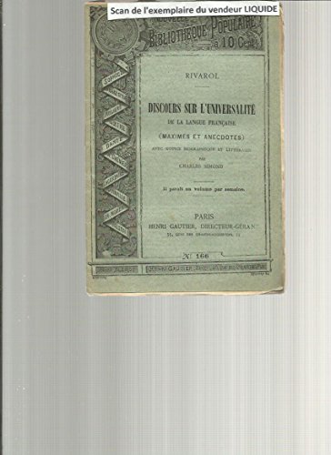 Don't need to bother, only on this site is available book Rivarol. Discours sur l'universalité de la langue française maximes et anecdotes, avec notices biographique et littéraire par Charles Simond.